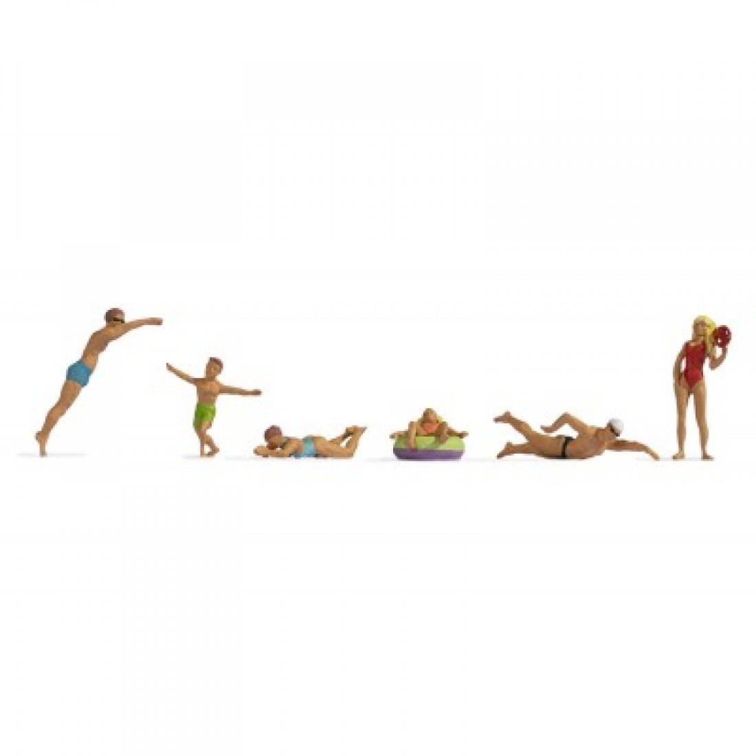 Das neue NOCH Figuren-Set in der Spurweite TT »Beim Baden« findet sich ideal auf jeder sommerlichen Modelllandschaft wieder. Auf der Sommerwiese, wo die wunderschönen Blumen blühen, sonnen sich die Erwachsenen und spielen die Kinder. Im kühlen Wasser holen sich alle Badenden eine schöne Abkühlung, um die pralle Sonne auszuhalten. Ein so schöner Sommertag darf auf keinem Diorama zur heißen Jahreszeit fehlen!