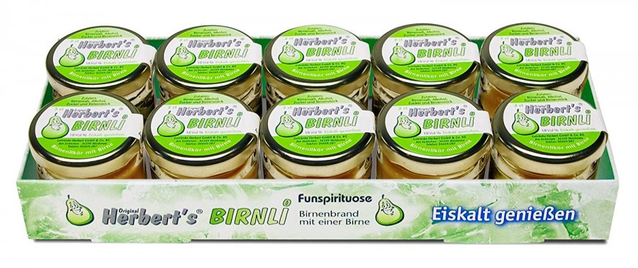 Zutaten: Birnensaft, Birnenbrand, Zucker und ein BirnenbällchenServierempfehlung Eiskalt genießen! Ursprungsland Deutschland Alkoholgehalt 18 % Vol Marke Original Herbert´s Jahrgang NV Hersteller/Produzent Getränke Herbert GmbH & Co. KG