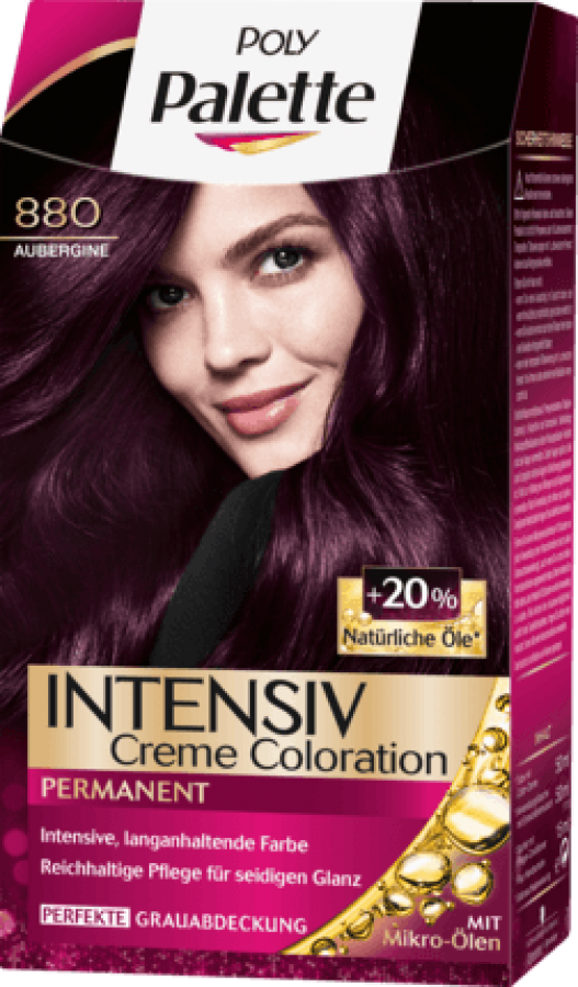 Für eine besonders ausdrucksstarke und langanhaltende Farbe: Die intensive Poly Palette Color-Creme Aubergine 880 mit Mikro-Ölen lässt die hochkonzentrierten Farbpigmente tief in das Haarinnere eindringen und versiegelt sie im Haar.