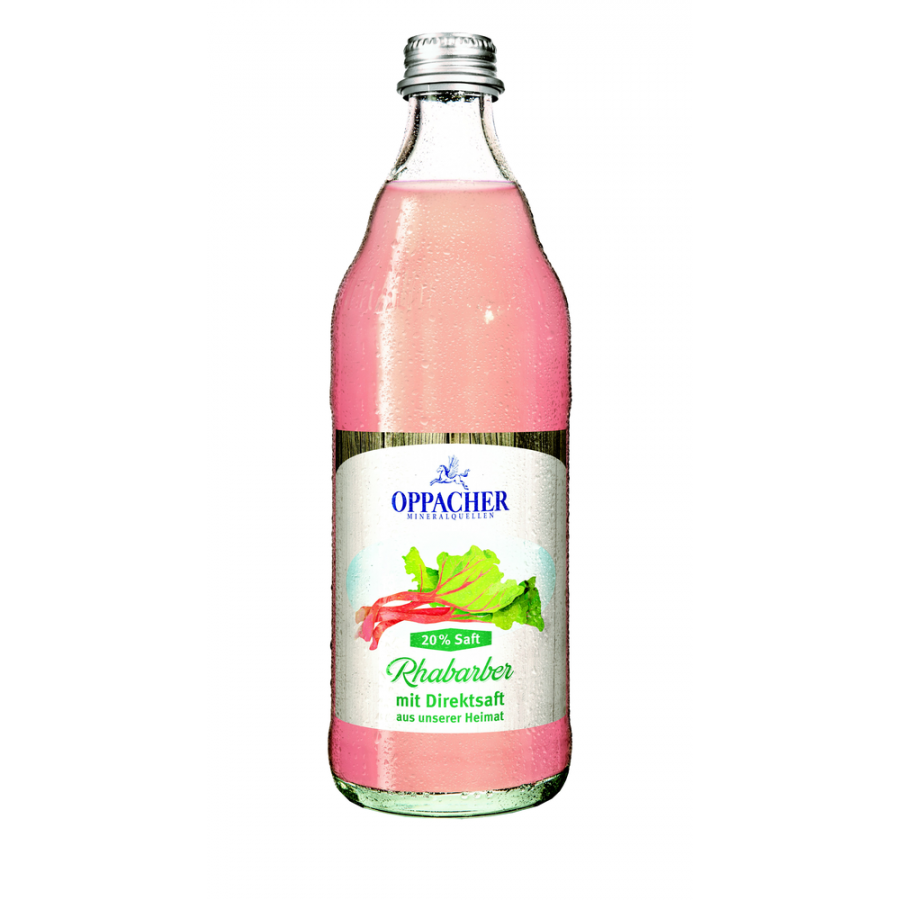 Erhältlich ist Oppacher Rhabarber mit Direktsaft ausschließlich in der zeitgemäßen 0,5 Liter Glasflasche in Retro-Design.