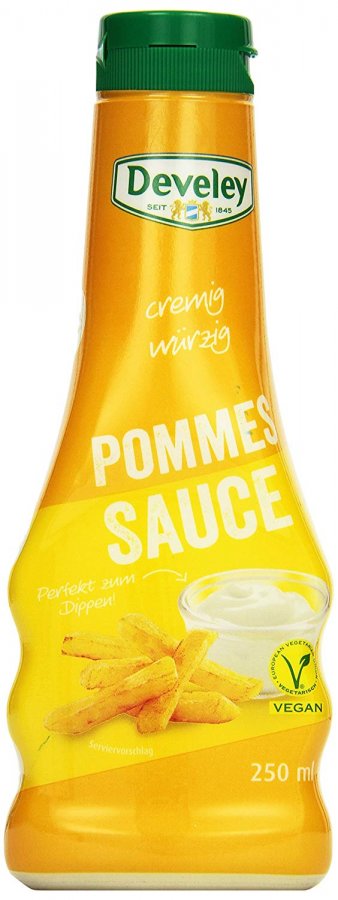 Produktbezeichnung Pommes Sauce Zusatzstoffe keine deklarationspflichtigen Zusatzstoffe vorhanden Portionsgröße 100 ml Energie (kJ) 1387 kJ Energie (kcal) 331.493 kcal Fett 31 Gramm davon: - Gesättigte Fettsäuren 2.2 Gramm Kohlenhydrate 13.3 Gramm davon: - Zucker 8.2 Gramm Eiweiß 0.1 Gramm Salz 2.6 Gramm Unternehmenskontakt 82001 Unterhaching Ursprungsland Germany Herkunftsort Deutschland Marke Develey Besonderheit vegan Hersteller/Produzent DEVELEY Die vegane Sauce mit nur 31% Fett enthält keine Konservierungsstoffe, Farbstoffe oder Geschmacksverstärker!